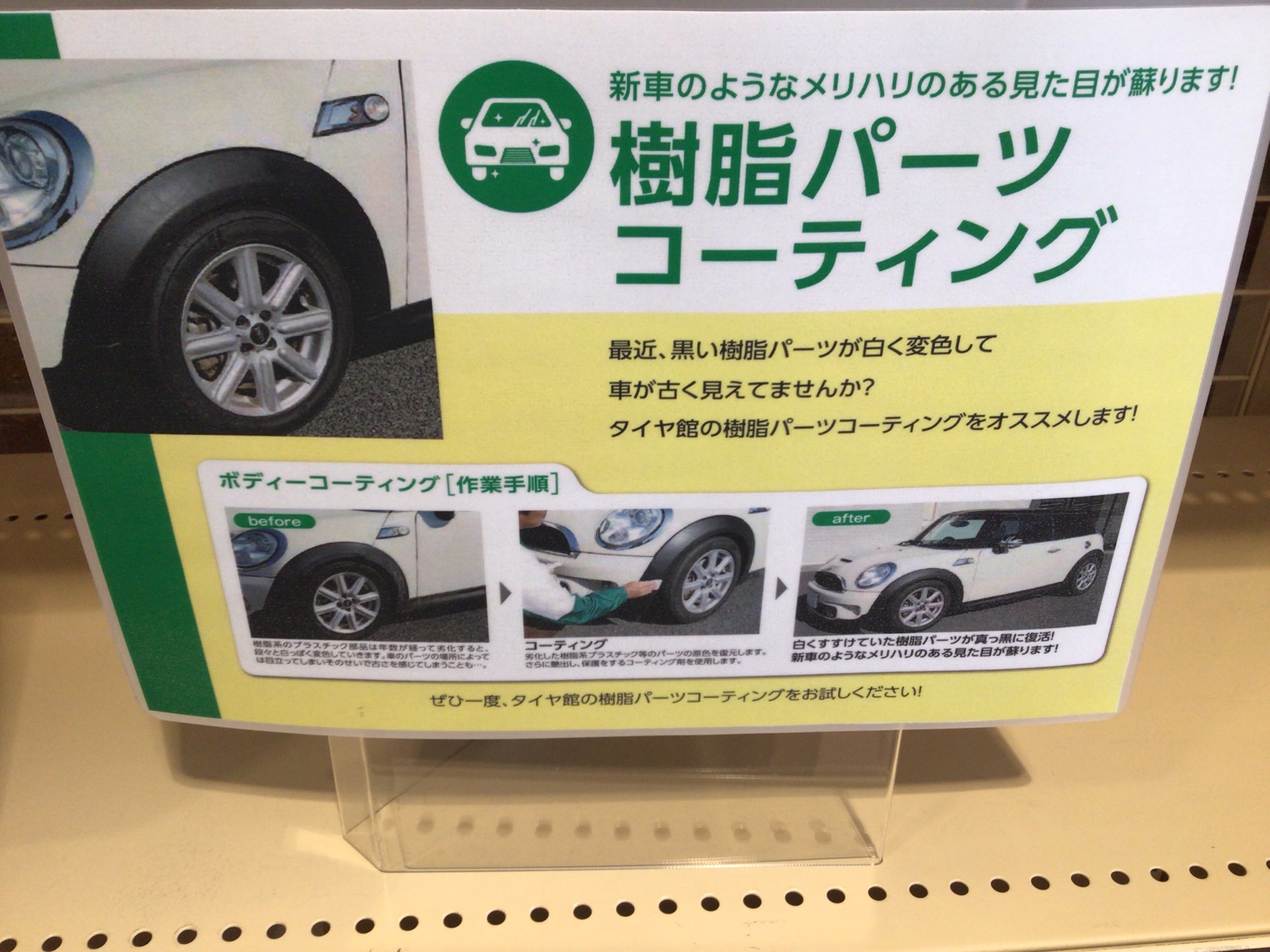 樹脂パーツコーティング初めました スタッフ日記 タイヤ館 おゆみ野 千葉県のタイヤ カー用品ショップ タイヤからはじまる トータルカーメンテナンス タイヤ館グループ